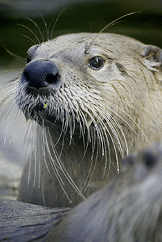 The river otter has a small, flat head and a thick tail. Its webbed feet help it swim. When it swims, the river otter can close its ears and nostrils tightly to keep the water out.